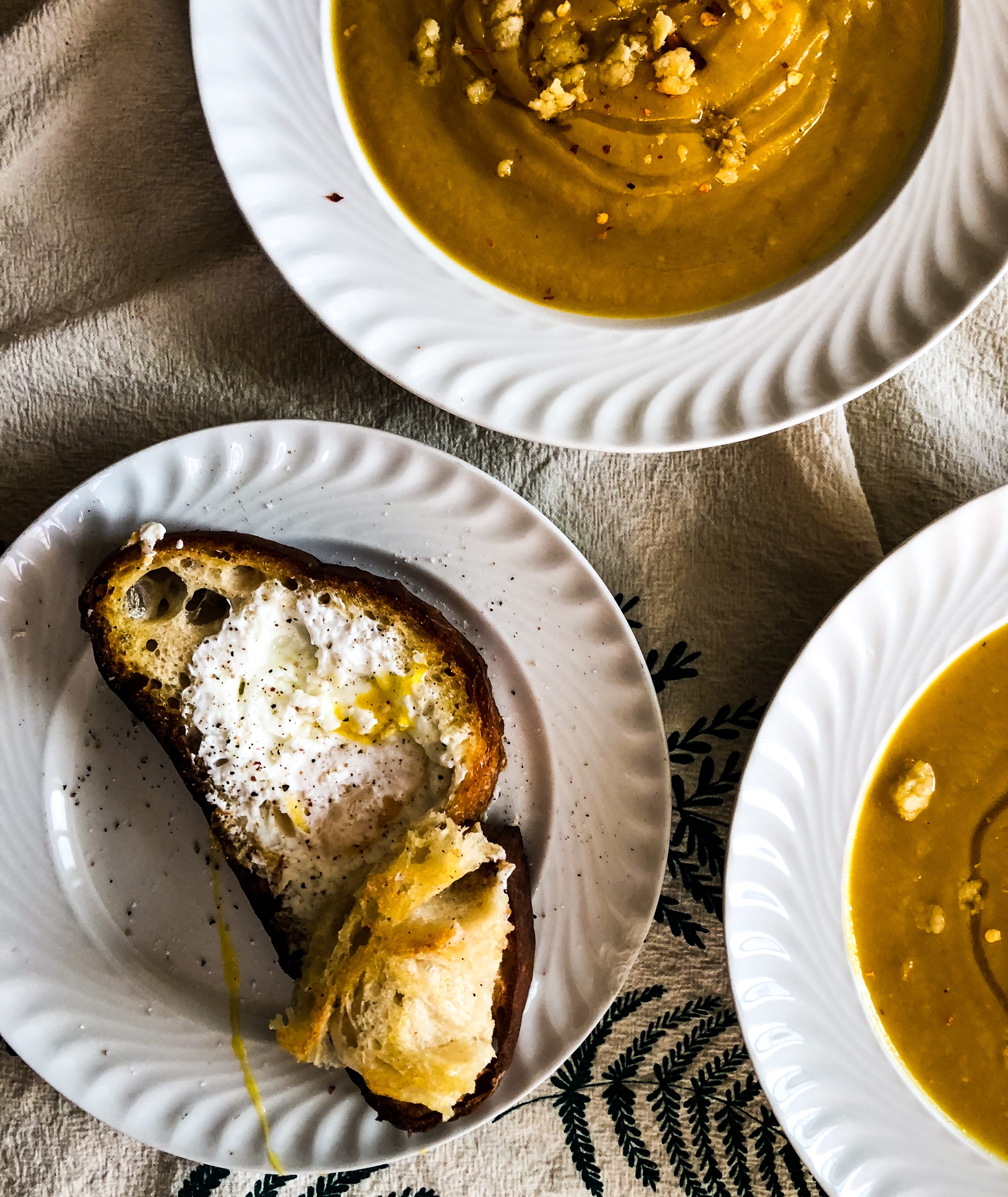 A MEAL FIT FOR A BEGGING NEWFIE: PUMPKIN & SWEET POTATO SOUP WITH SUN TOAST