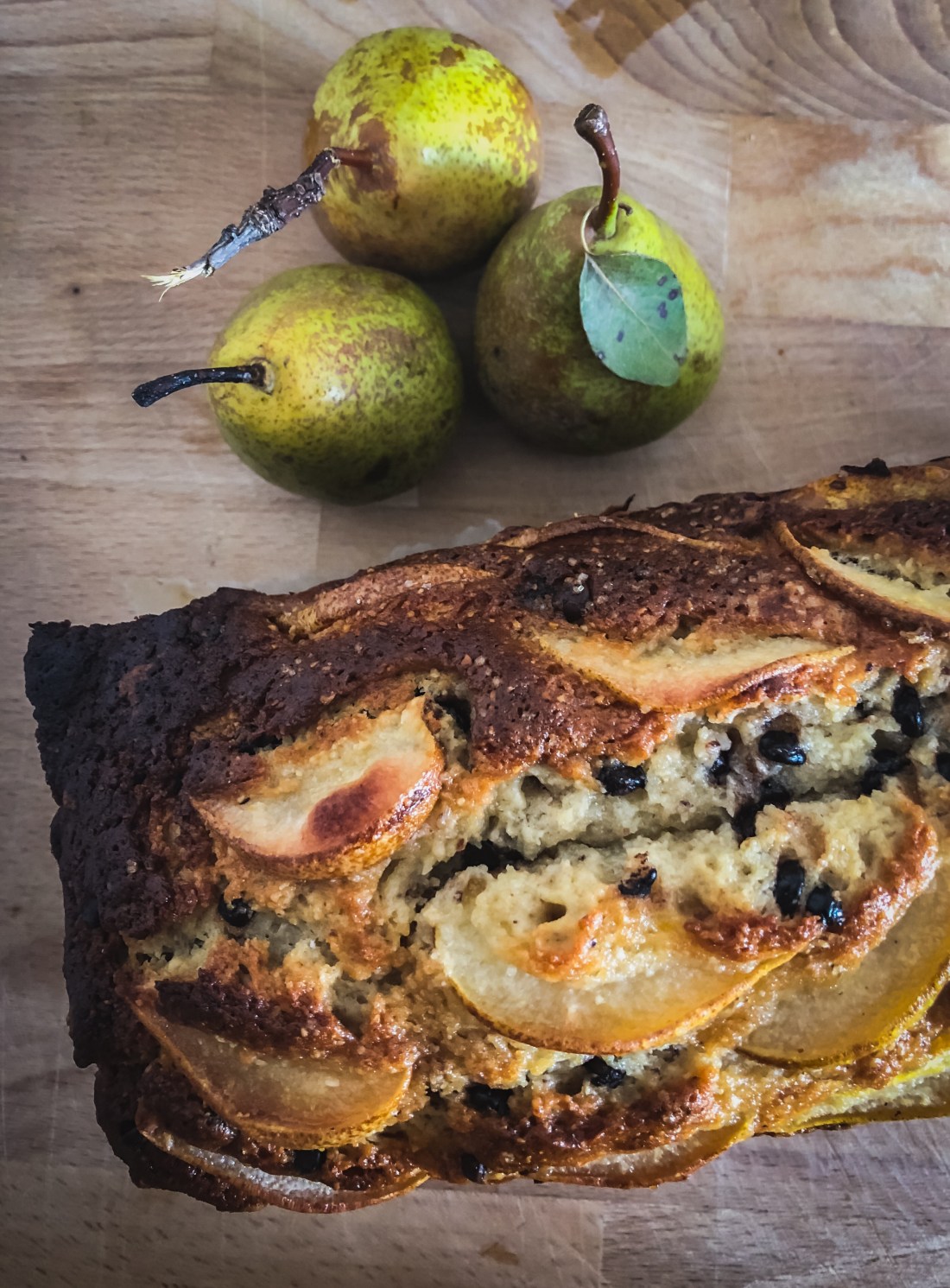 The third time was here, in my kitchen in Bra. I was joined by a new friend I made here who had an itch to bake as well. I changed the recipe this time, to suit this new place I am in. I substituted a bit of hazelnut flour for the regular (or Tipo ’00’) flour, folded a bunch of mini dark chocolate chips into the batter and topped the cake with thin slivers of pear and a bit of local honey. I also used a very nice buffalo milk ricotta from a local cheesemaker. This time was my favorite. Something about the hazelnut flour, pears, honey and chocolate made it particularly irresistible. I hope you try this easy cake out a few times and adapt it your own way as well – at least three times.
